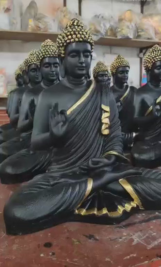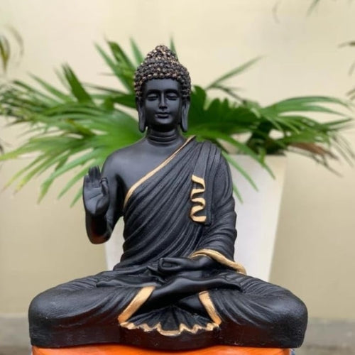This 15-inch black Buddha statue offers a refined representation of calm and mindfulness, crafted to enhance any space with a serene presence. Its detailed design and harmonious proportions make it an ideal centerpiece for meditation rooms, living areas, or offices, fostering tranquility and focus. The deep black finish adds a modern, elegant touch, complementing various décor styles while symbolizing wisdom and peace. Practical in size, it fits comfortably on shelves or altars, inviting daily contemplation and balance into your environment.
