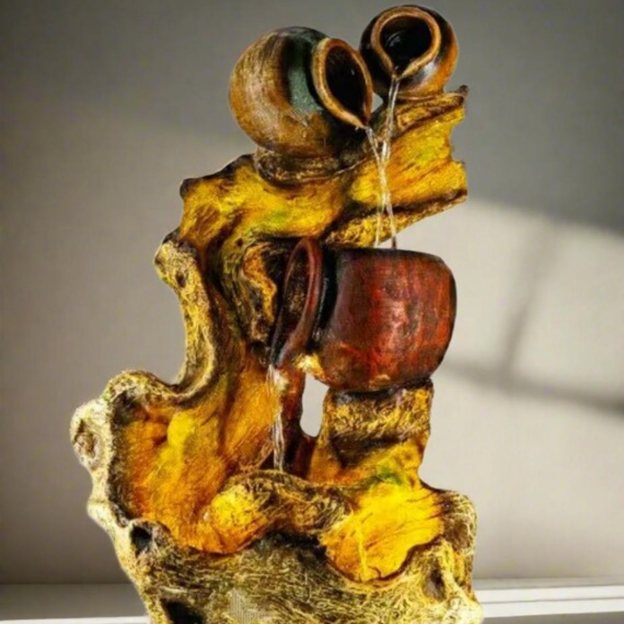 The Double Matki Fountain combines traditional design with expert craftsmanship, featuring two intricately shaped matki vessels that create a soothing water flow.