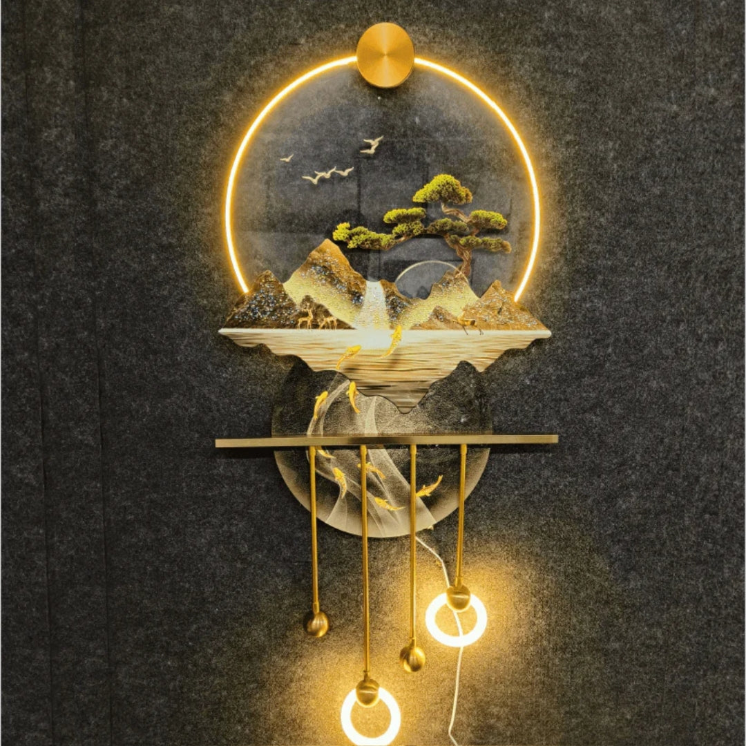 Mountain & Birds with Lights Wall Art