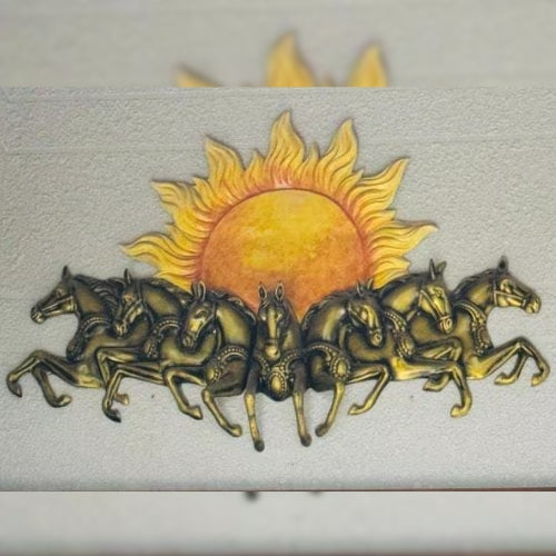 Transform your space with the "Surya ke Saat Ghode" wall mural, a striking depiction of the Sun God’s seven horses. This mural brings a dynamic and vibrant energy to any room, blending traditional artistry with modern decor.